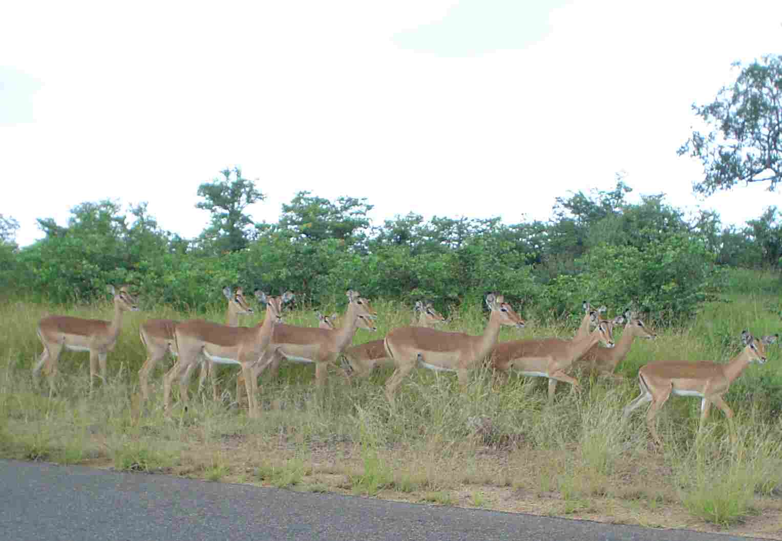 Impalas at the side of the road in the Kruger Park close to the Phalaborwa Gate(Limpopo)